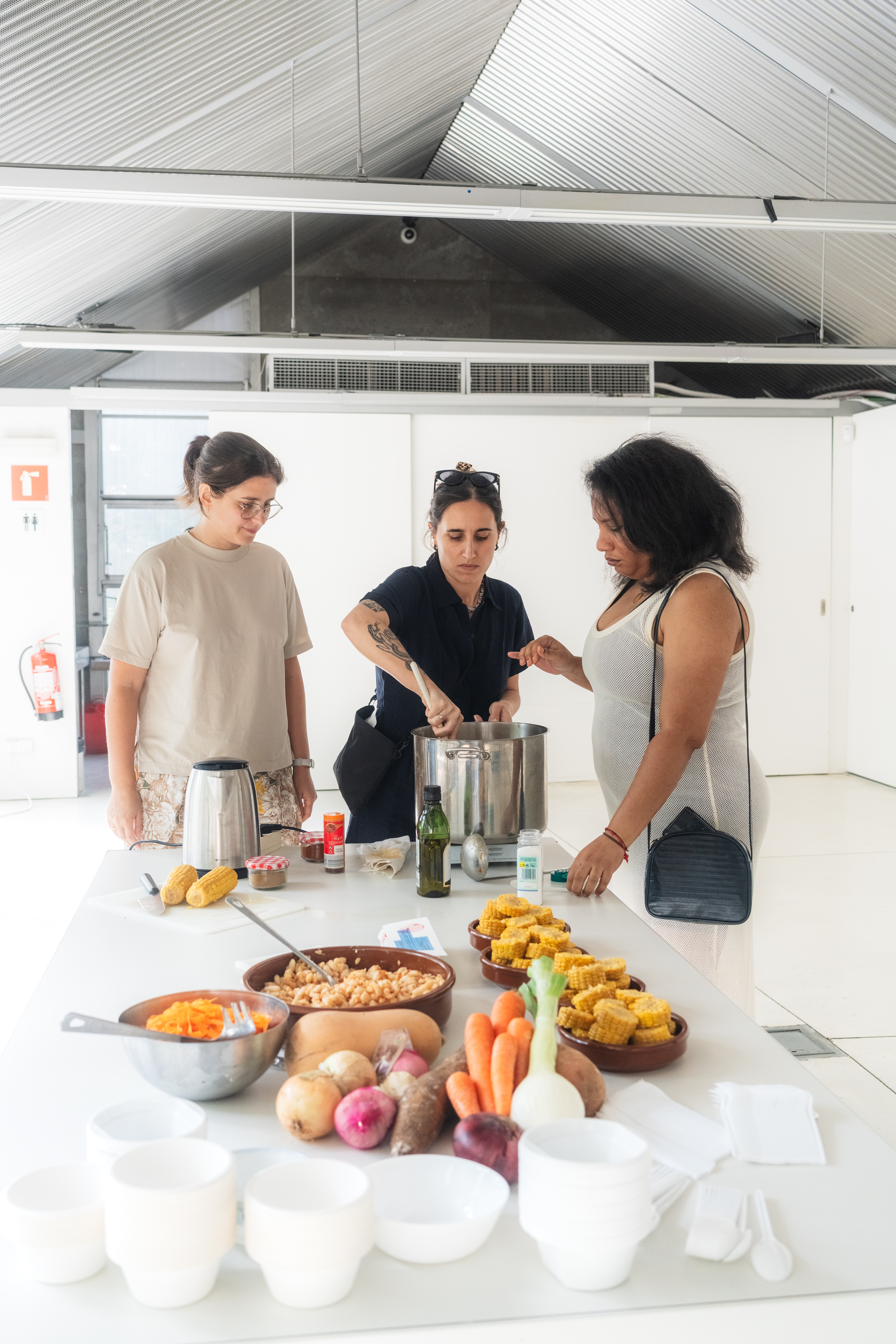 En el contexto de la celebración por los 50 años de la Fundacio Joan Miró, convoque a Lizette Nin (parte del colectivo mango and okra) y a Anna Andrzhievskaya para cocinar juntas y pensar acerca de las posibles mutaciones que la receta pueda tener a partir de su cultura e historia personal.