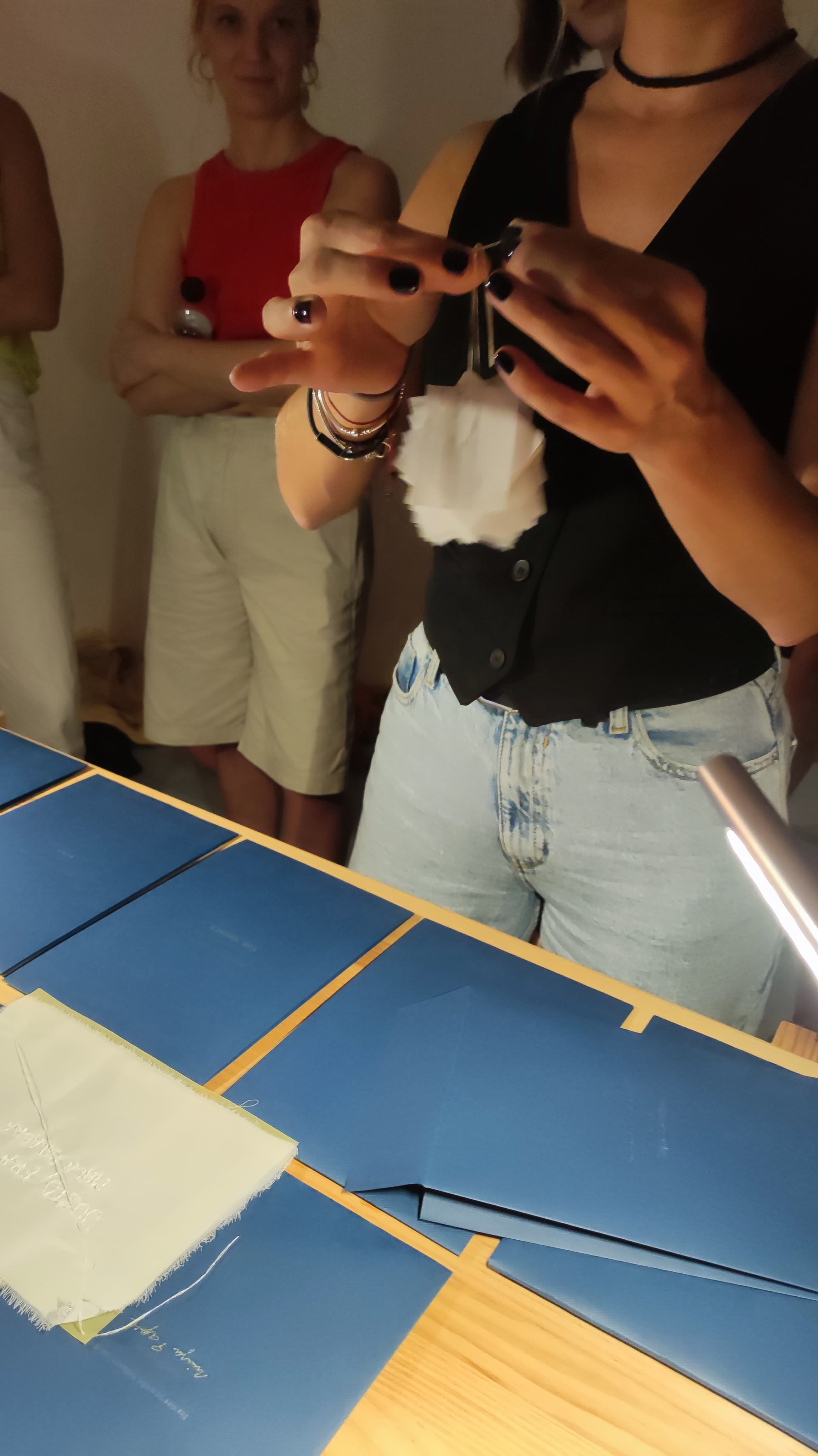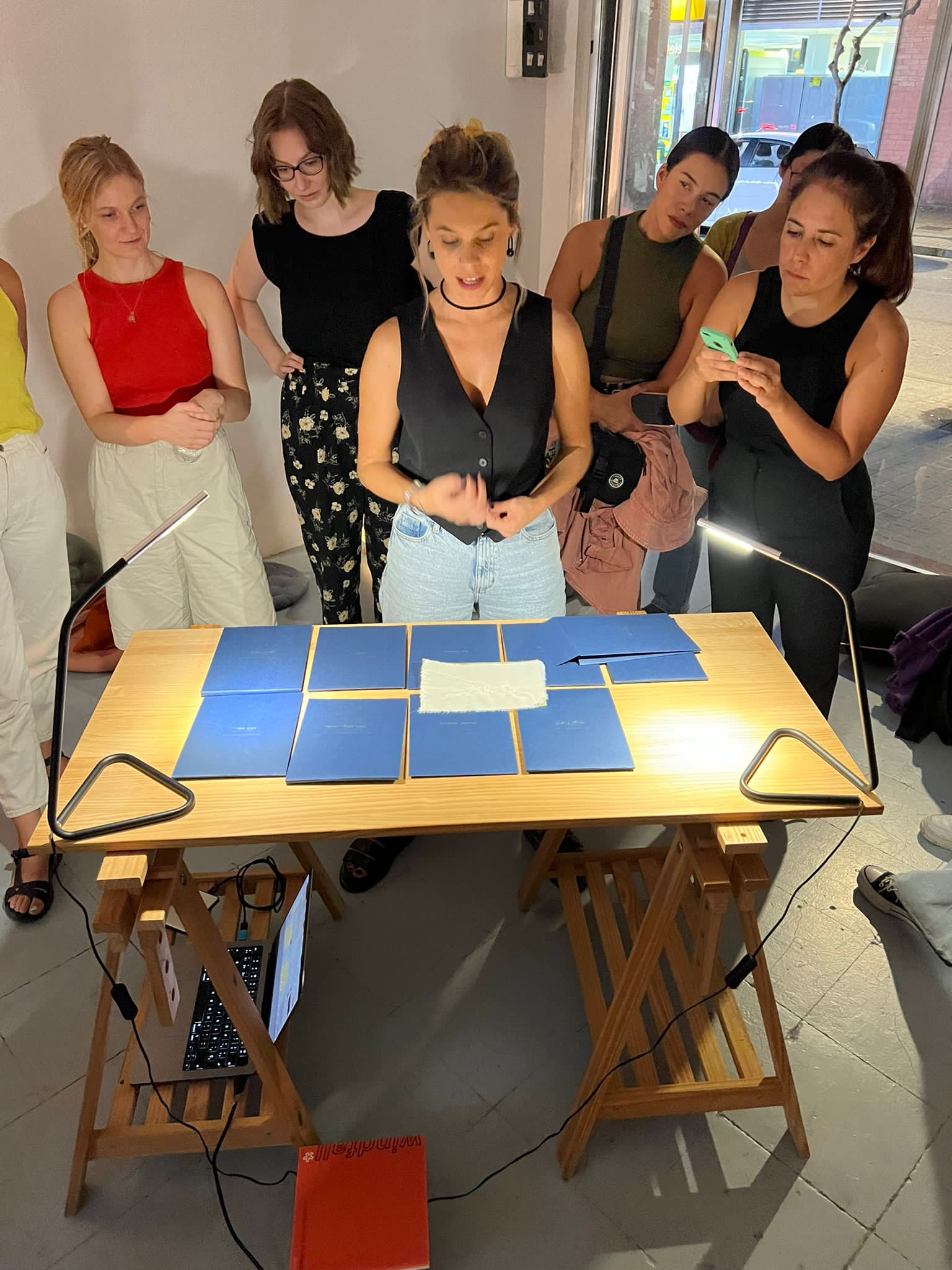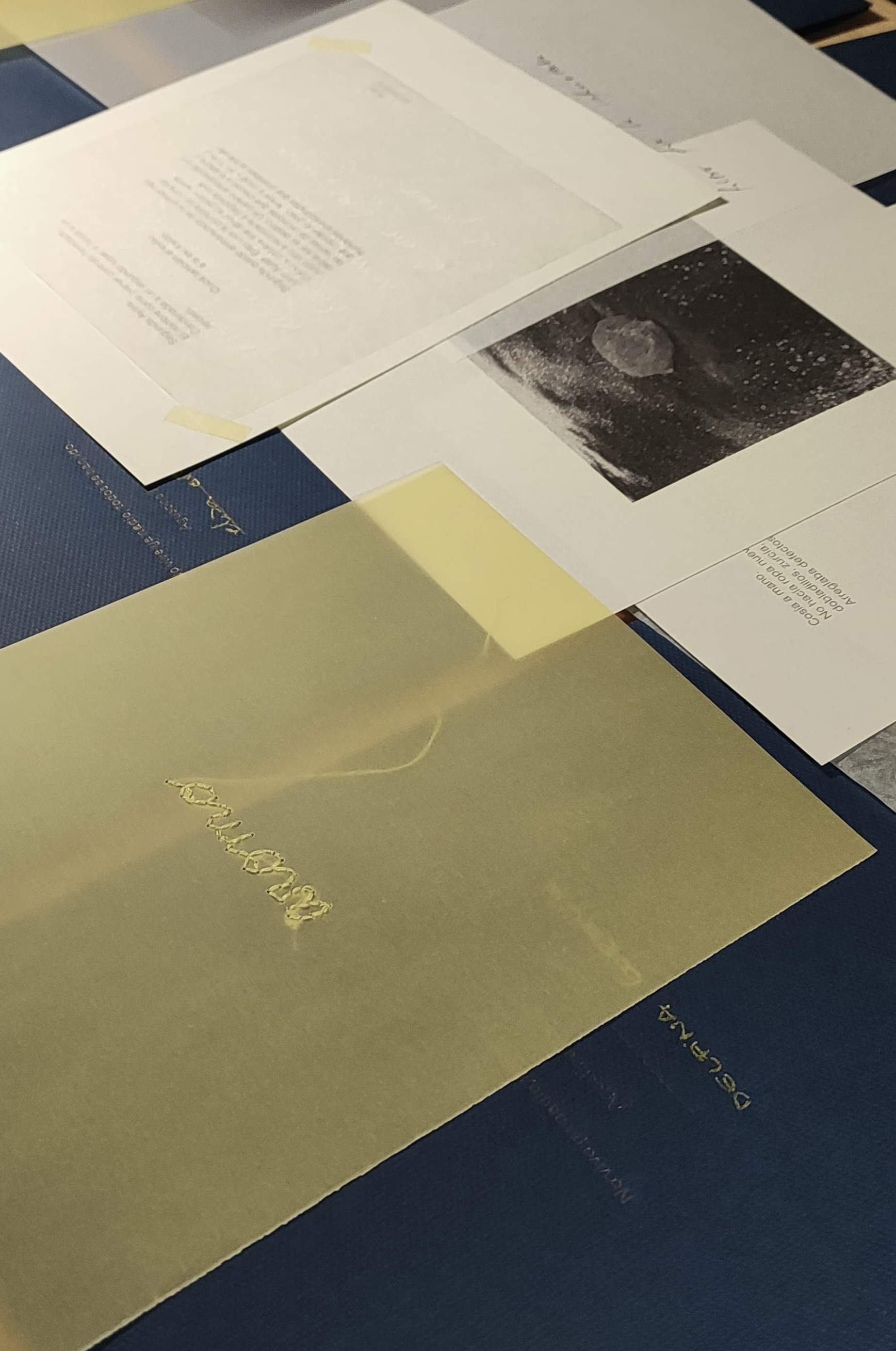 En una segunda instancia del proyecto, pensando en cómo los relatos continúan evolucionando, se mezclan y deforman, trabajé en un libro de artista con un fuerte carácter experimental, tanto en la experimentación con papeles diversos como de formas de escritura e impresión. Estos libros fueron presentados en Tandem on Books en Chiquita Room durante Sant Jordi 2024 y en Fundació Miró en el contexto de Lluerna 2024, donde hicimos una lectura coral/performance de algunos de losrelatos que surgieron durante el proceso.