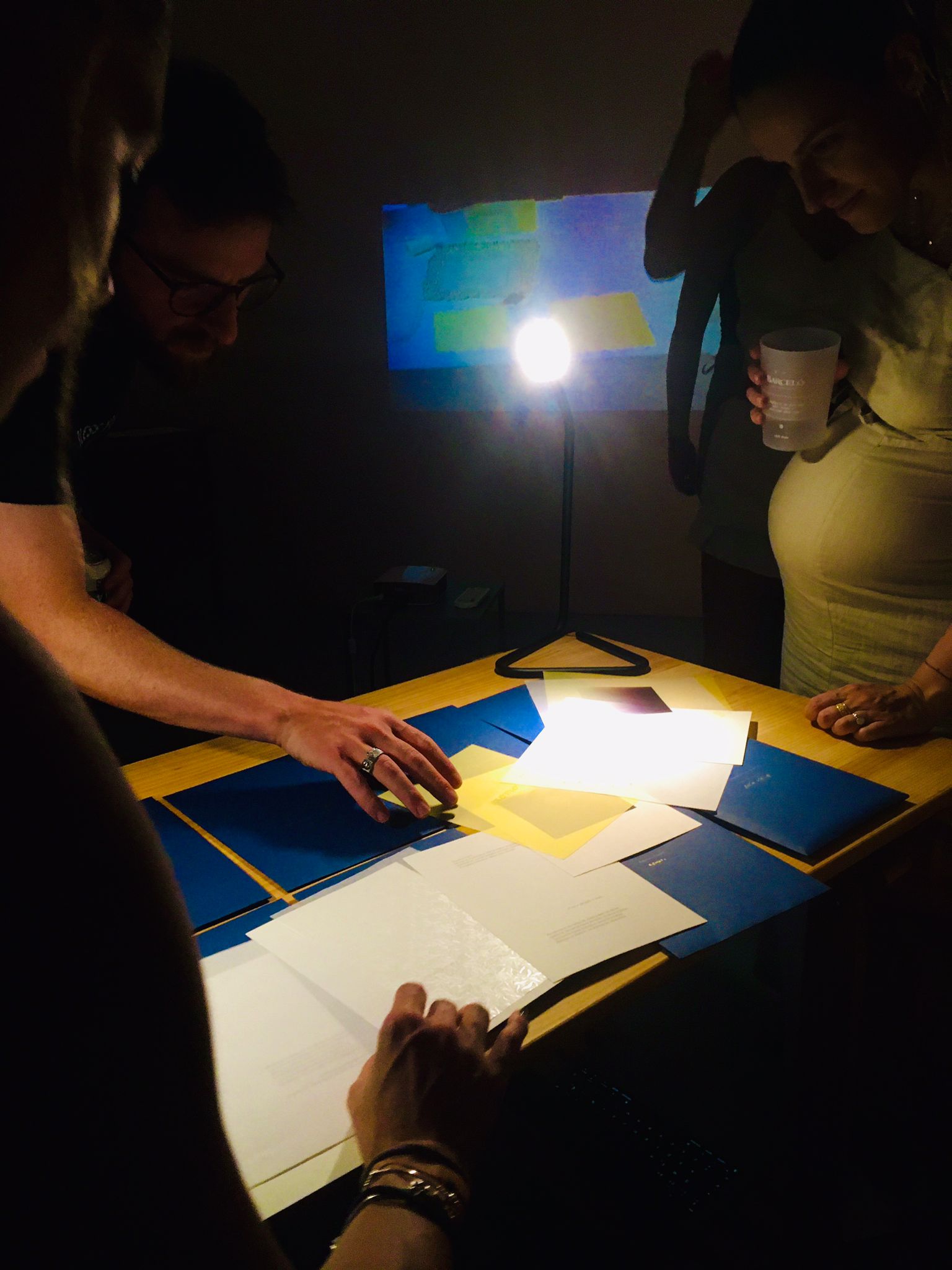 Realizamos además una instalación con el conjunto de los libros y se generó una ronda de conversación alrededor del proceso de creación, así como también una lectura a dos voces propuesta por una de las artistas invitadas, reflejando las rupturas y reformulaciones que puede tener la construcción del concepto de hogar. El proceso fue registrado con una cámara de video instalada por encima de la mesa para registrar aquellos movimientos, mutaciones y deformaciones que ocurrieran. El registro de video fue proyectado durante la conversación, como una capa adicional del relato.